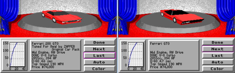 Zapper's Car Pack - Ferrari 288 GTO - new front showroom (CAR0) comparison with original car