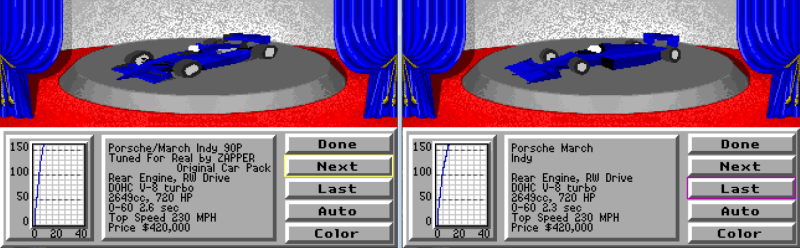 Zapper's Car Pack - Porsche/March Indy (90P) - new front showroom (CAR0) comparison with original car