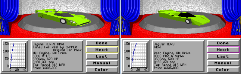 Zapper's Car Pack - Jaguar XJR-9 - new front showroom (CAR0) comparison with original car